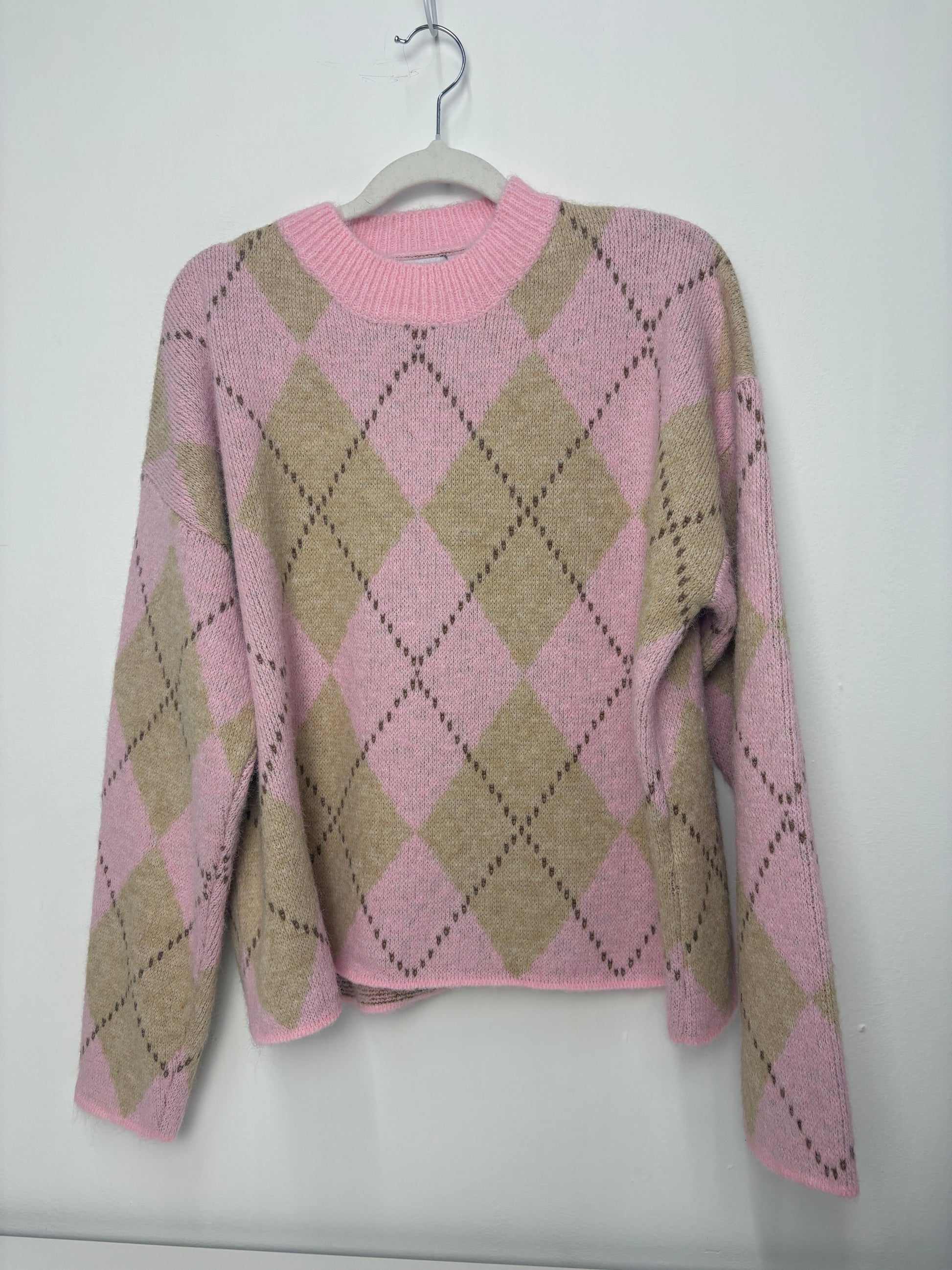 Jersey de Mujer de Lana con Dibujo de Rombos en Tono Rosa – Trapio